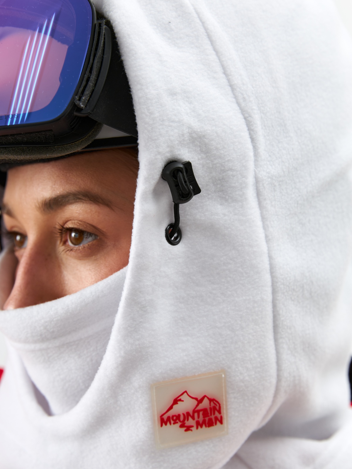 Балаклава-капюшон MOUNTAIN MAN (белая) — тёплый, лёгкий и стильный выбор для зимних приключений и повседневного использования. Идеально сочетается с одеждой бренда MountainMan: сноубордическими худи, комбинезонами, анораками и шапками.
