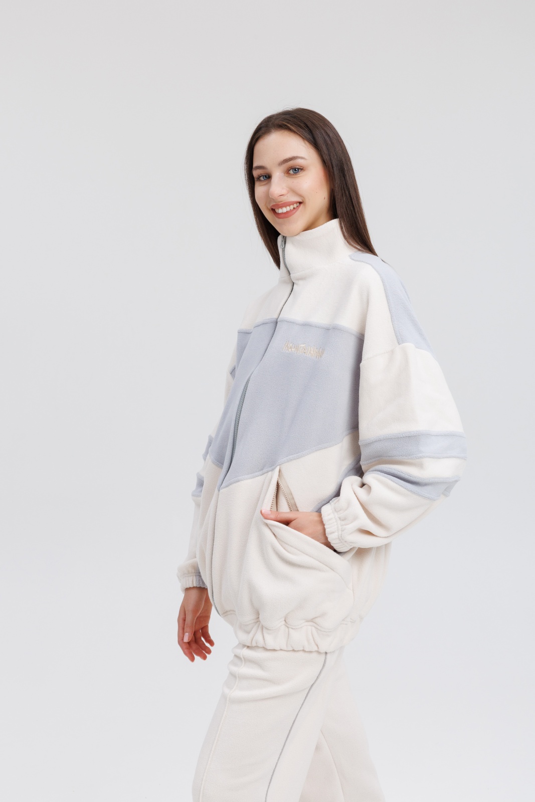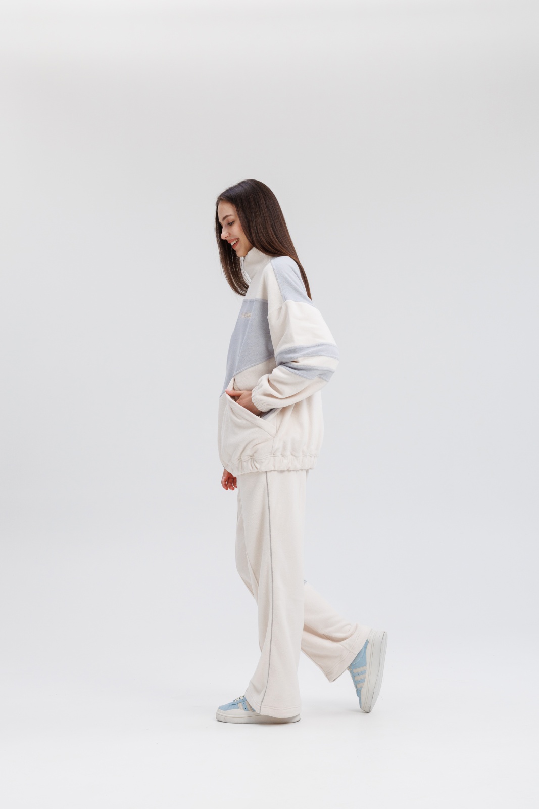 Костюм включает куртку на молнии с удобными карманами и брюки с эластичным поясом — комфорт в каждой детали. - Практичный цвет