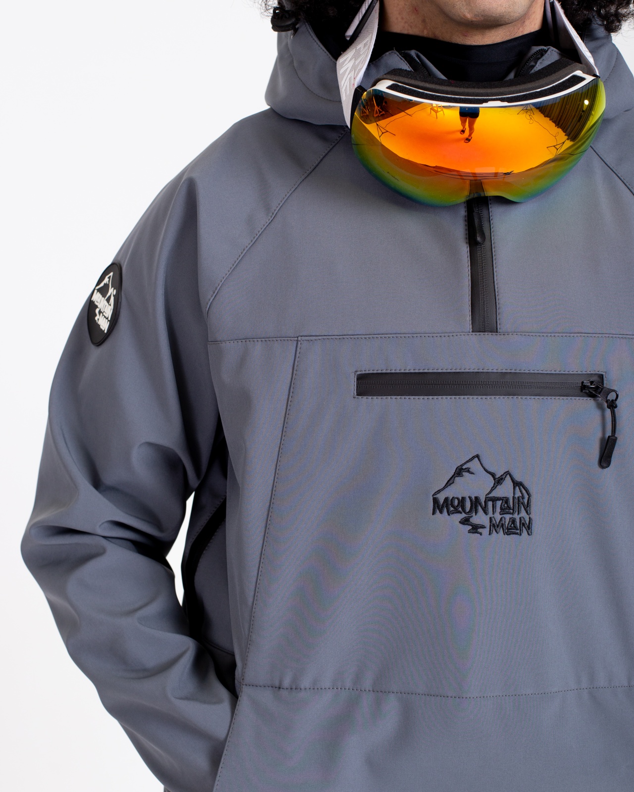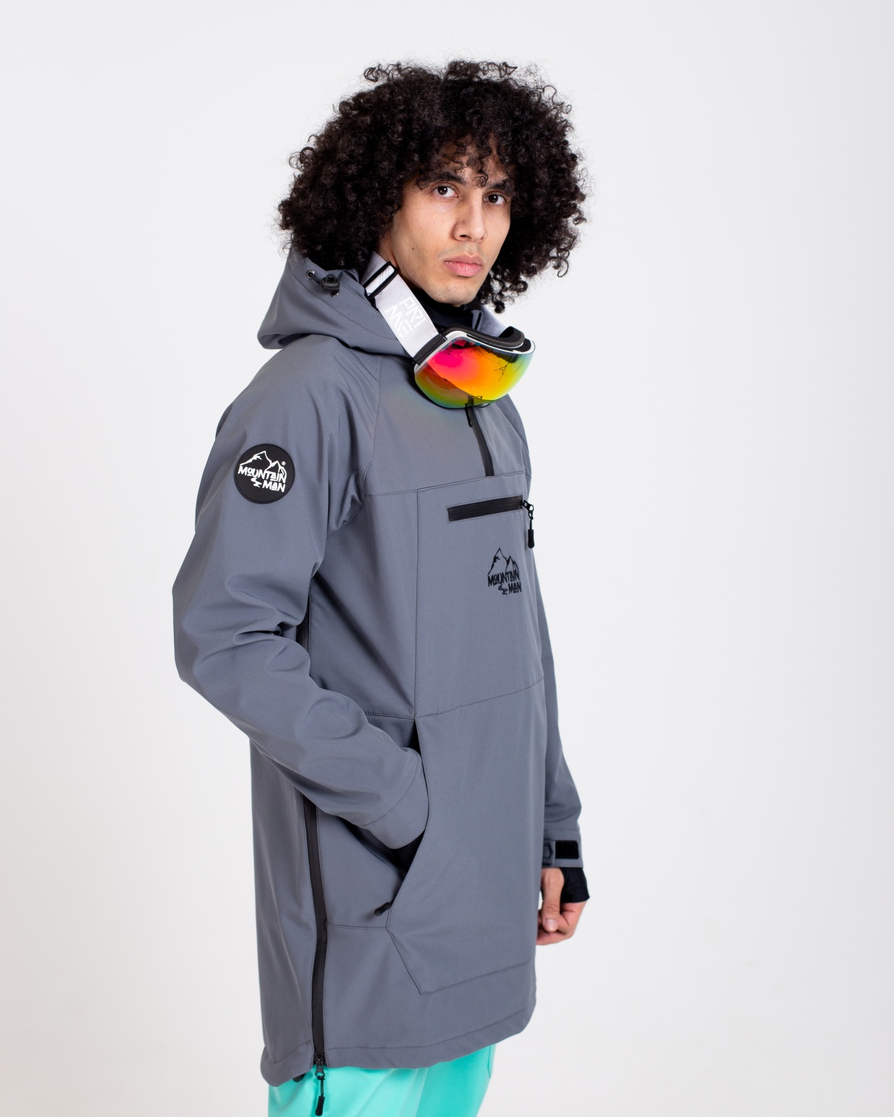 Зимний анорак Rock от MOUNTAIN MAN — универсальная модель унисекс свободного кроя, произведённая в России. Анорак выполнен из профессиональной мембранной ткани Softshell 10 000/10 000 — хит коллекции весна/лето 2022.
