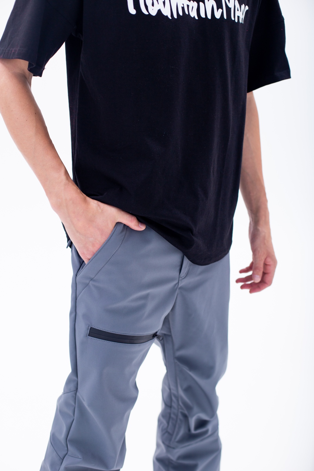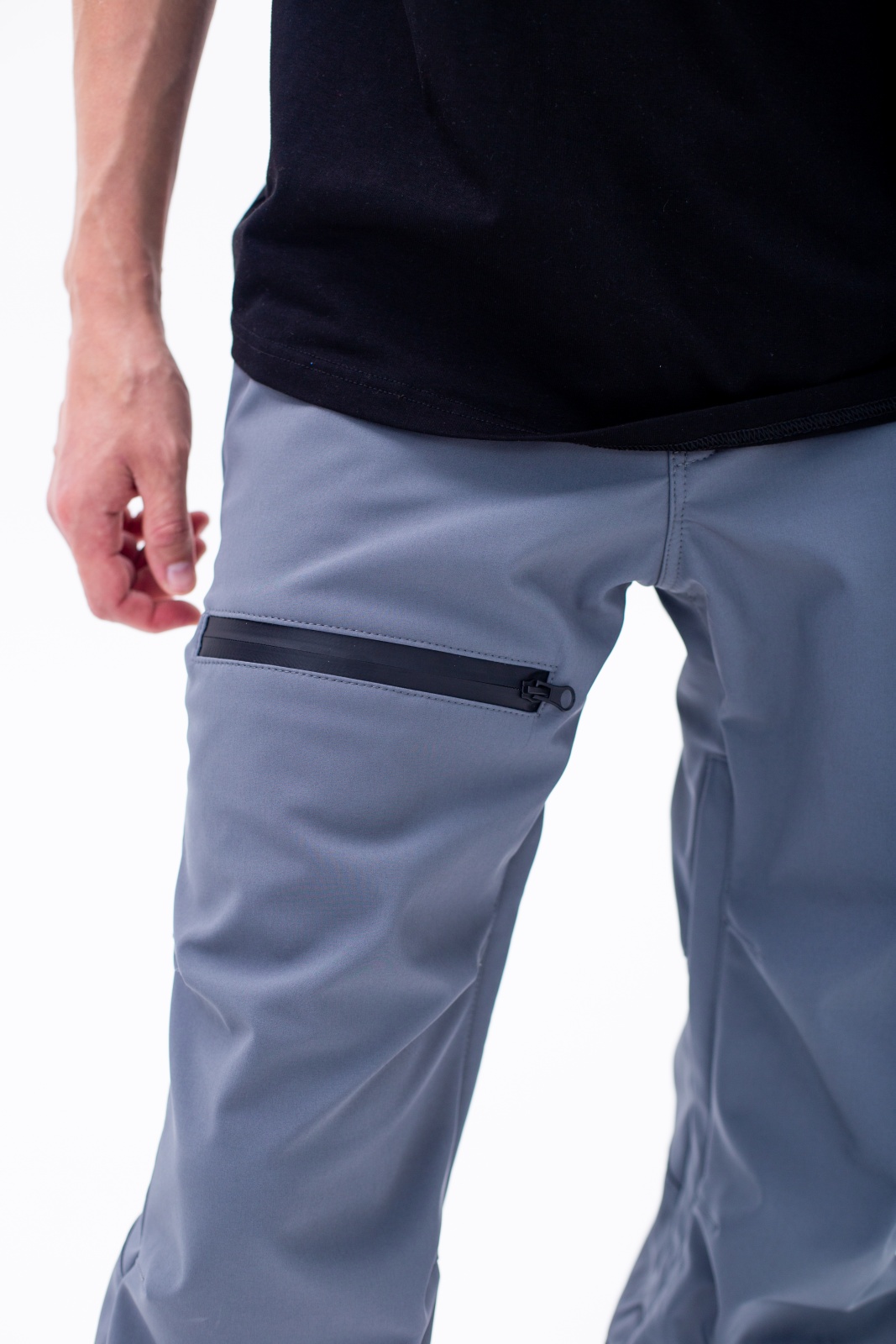 • Клиновидные вставки с кнопками в нижней части штанин для регулировки ширины низа.